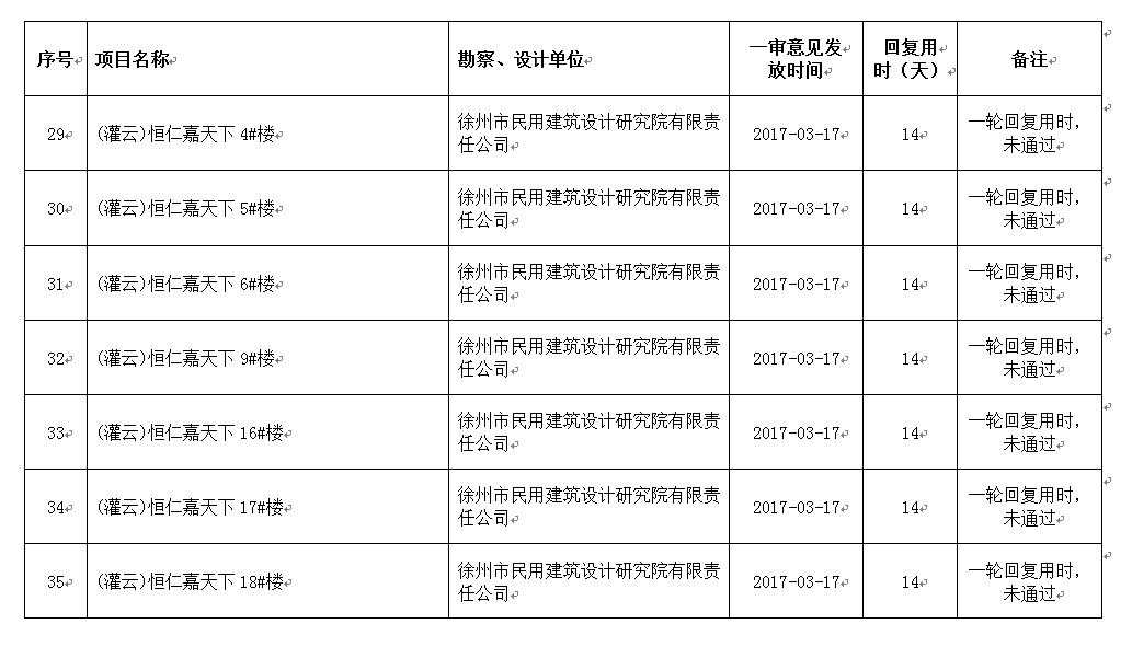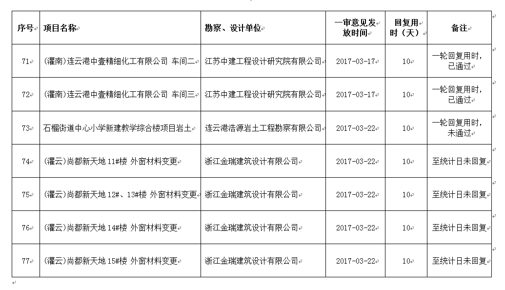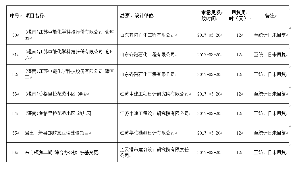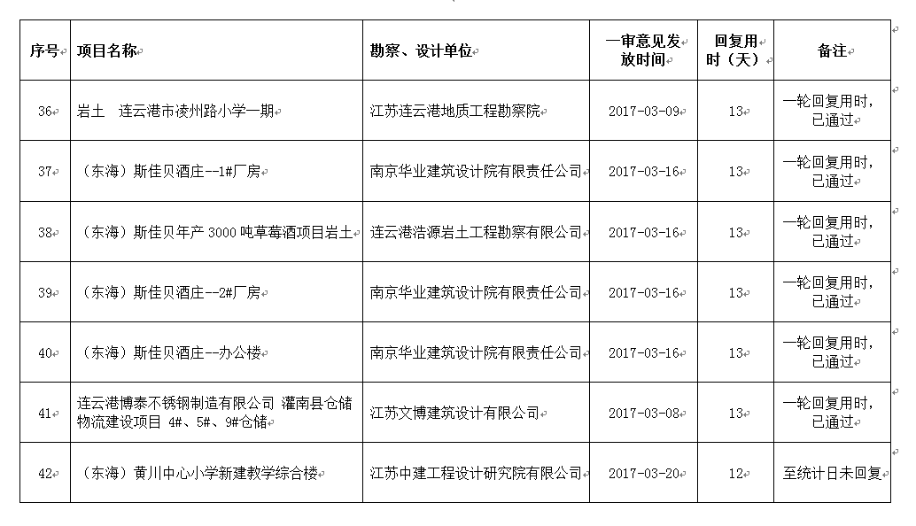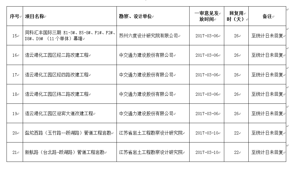 2017年3月份设计单位回复不及时项目公示