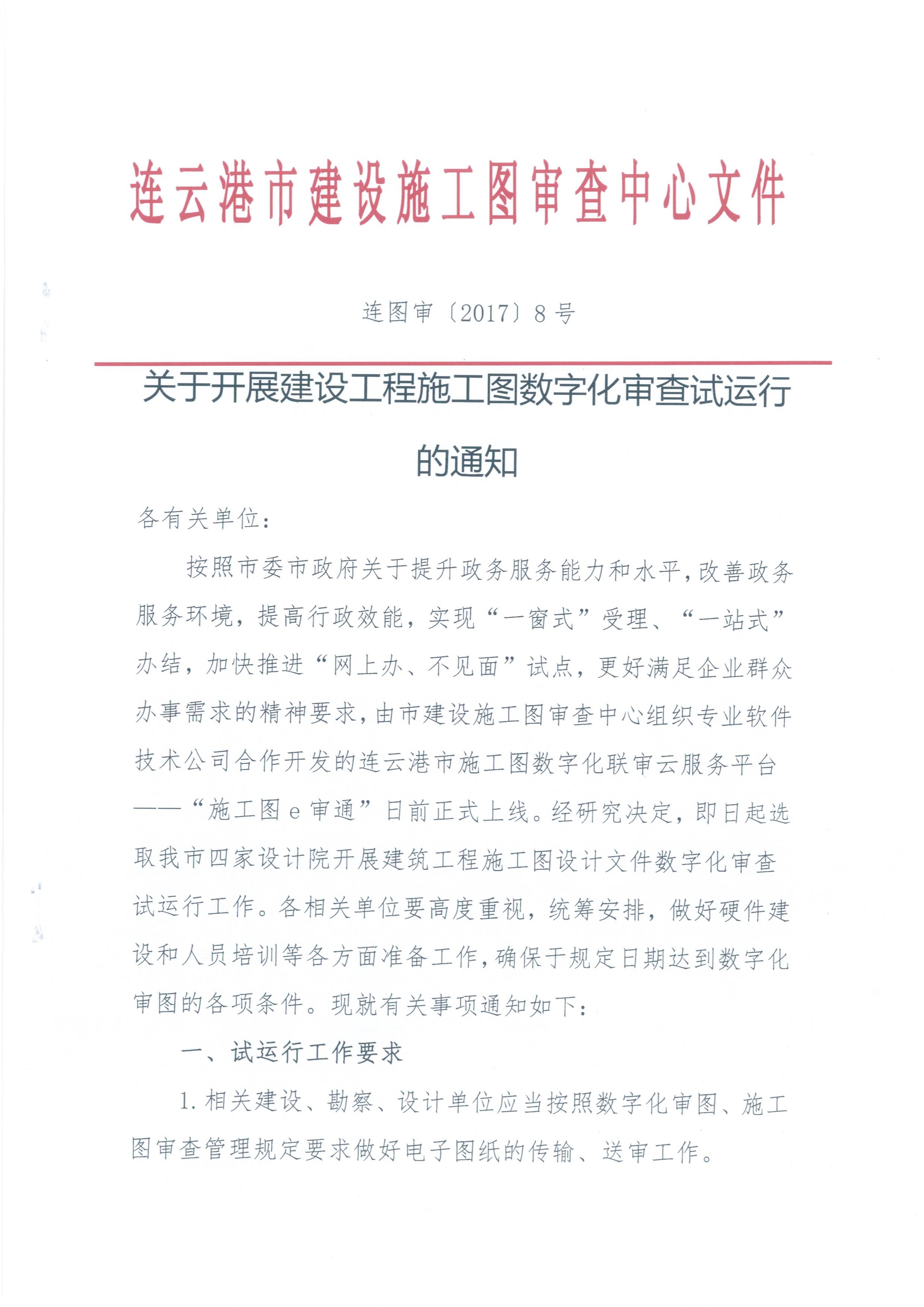 关于开展建设工程施工图数字化审查试运行的通知