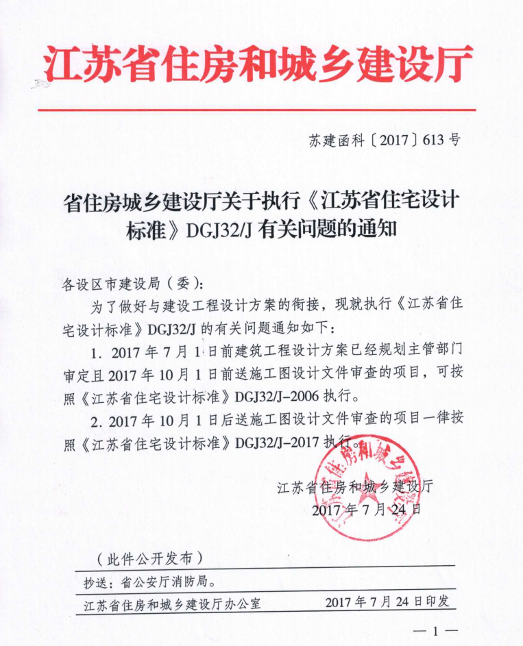 省住房城乡建设厅关于执行《江苏省住宅设计标准》DGJ32/J有关问题的通知