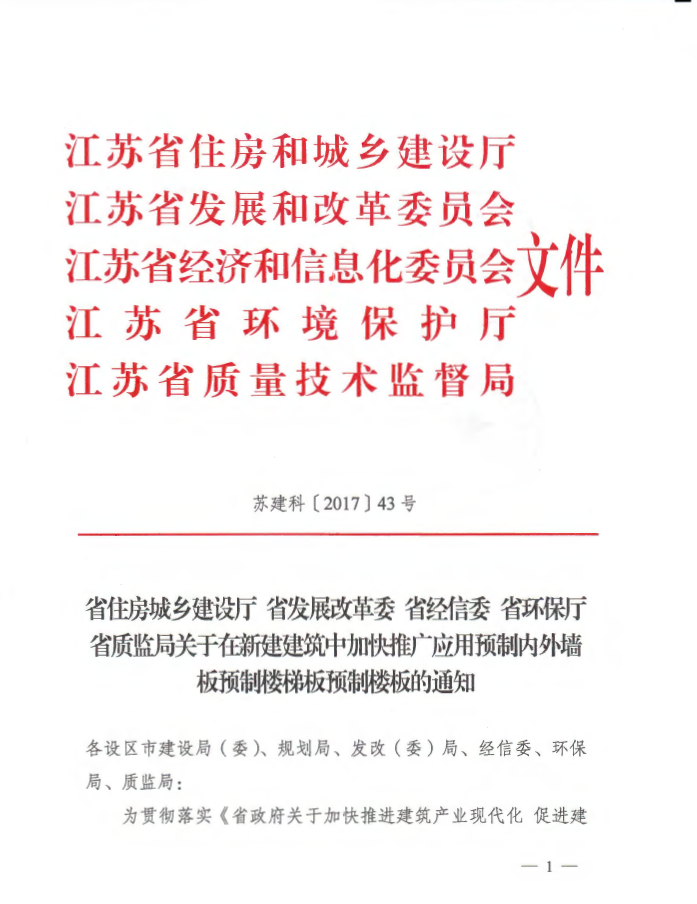 关于在新建建筑中加快推广应用预制内外墙板预制楼梯板预制楼板的通知