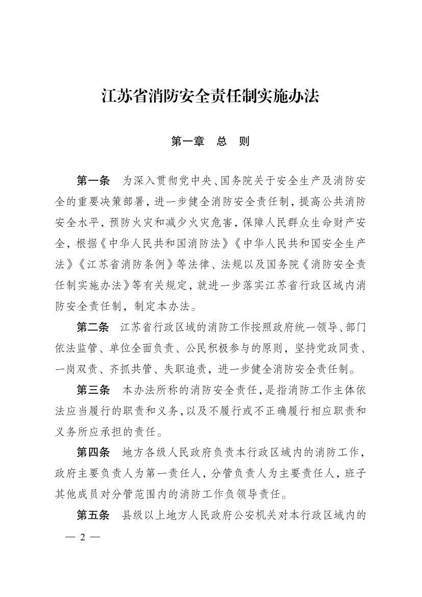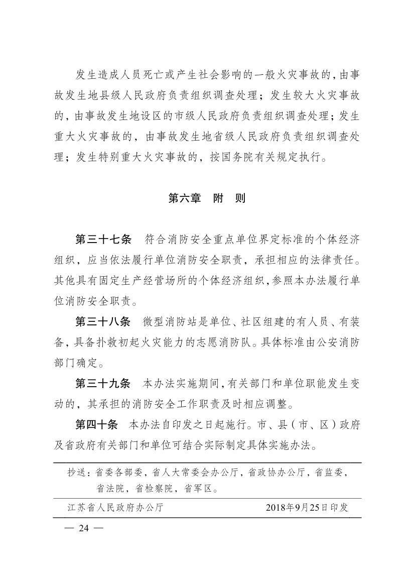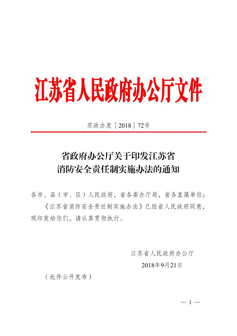 省政府办公厅关于印发江苏省消防安全责任制实施办法的通知