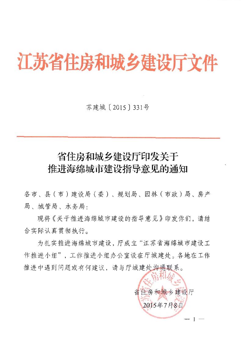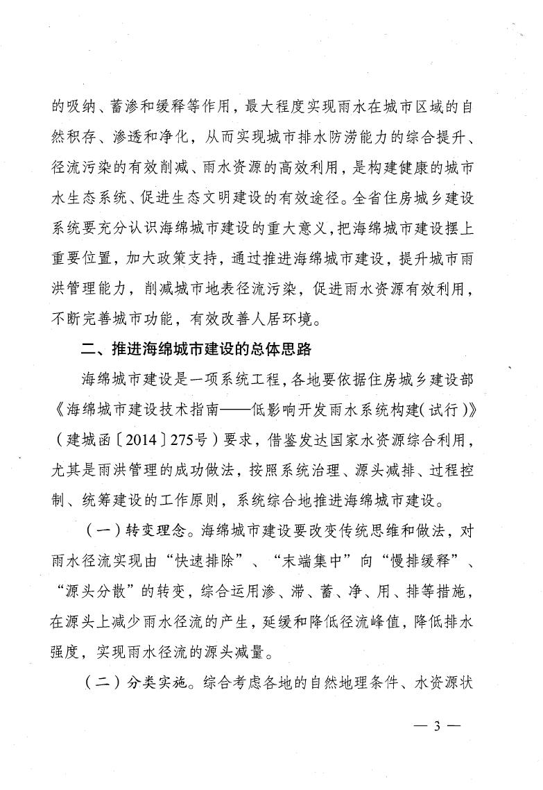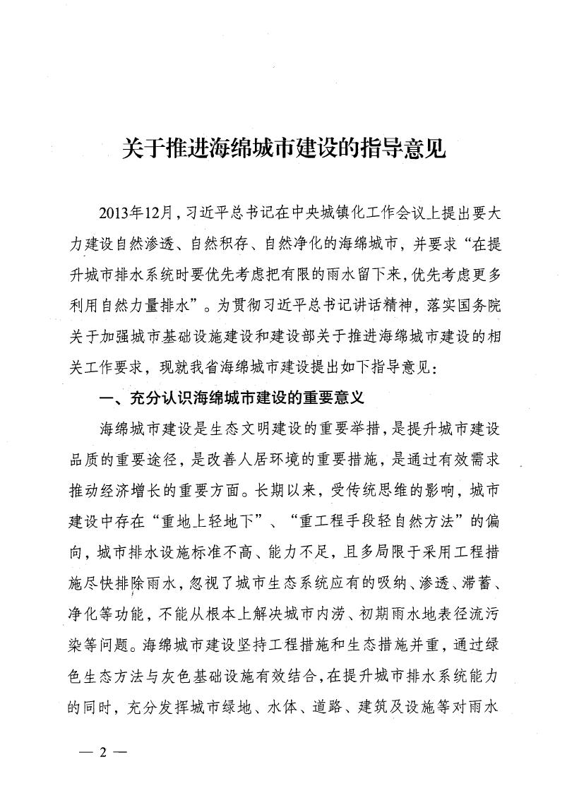 省住建厅关于推进海绵城市建设指导意见的通知