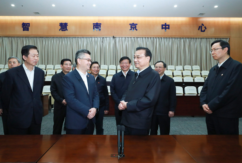 李克强总理11月30日考察“智慧南京”中心。该中心整合了近百个部门单位的数据和近300项服务事项,融合线上信息系统和线下服务窗口,使85%的事项全程可以网上办理,实现了“不见面审批”。总理称赞道,“不见面审批”已成为江苏的一张亮丽名片,是“放管服”改革的一大突破。你们的探索和实践极大方便了群众和企业办事,切实做到了“数据多跑路、群众少跑腿”,不仅提高了行政效率,也在更大领域里促进了公平。江苏要继续深化“放管服”改革,为全国作标杆。