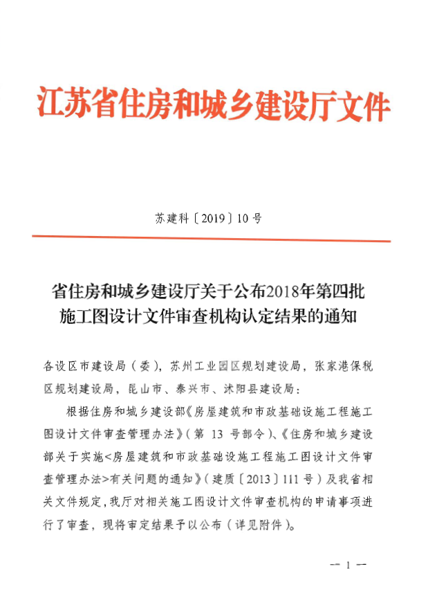 省住房和城乡建设厅关于公布2018年第四批施工图设计文件审查机构认定结果的通知