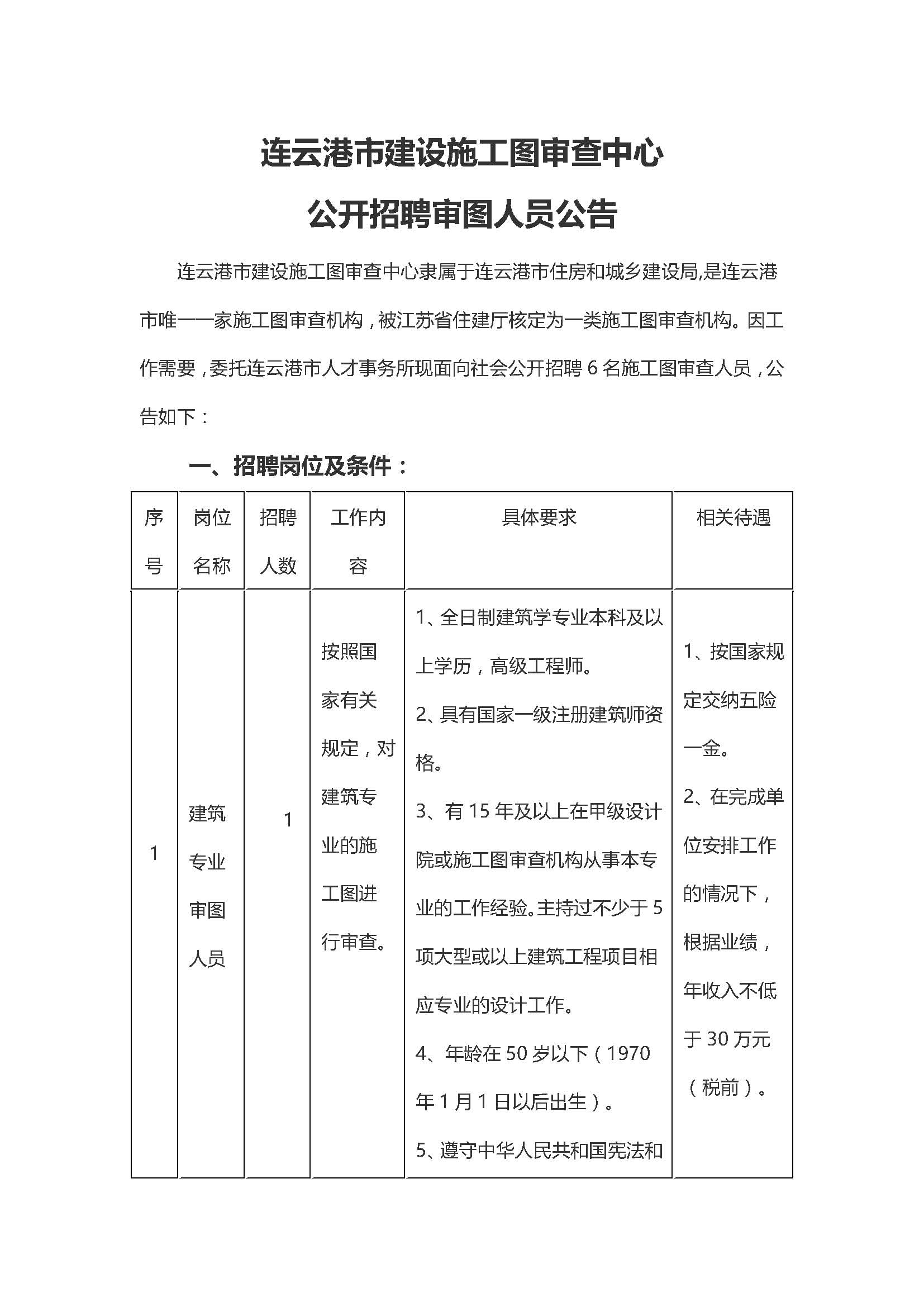 连云港市建设施工图审查中心公开招聘审图人员公告