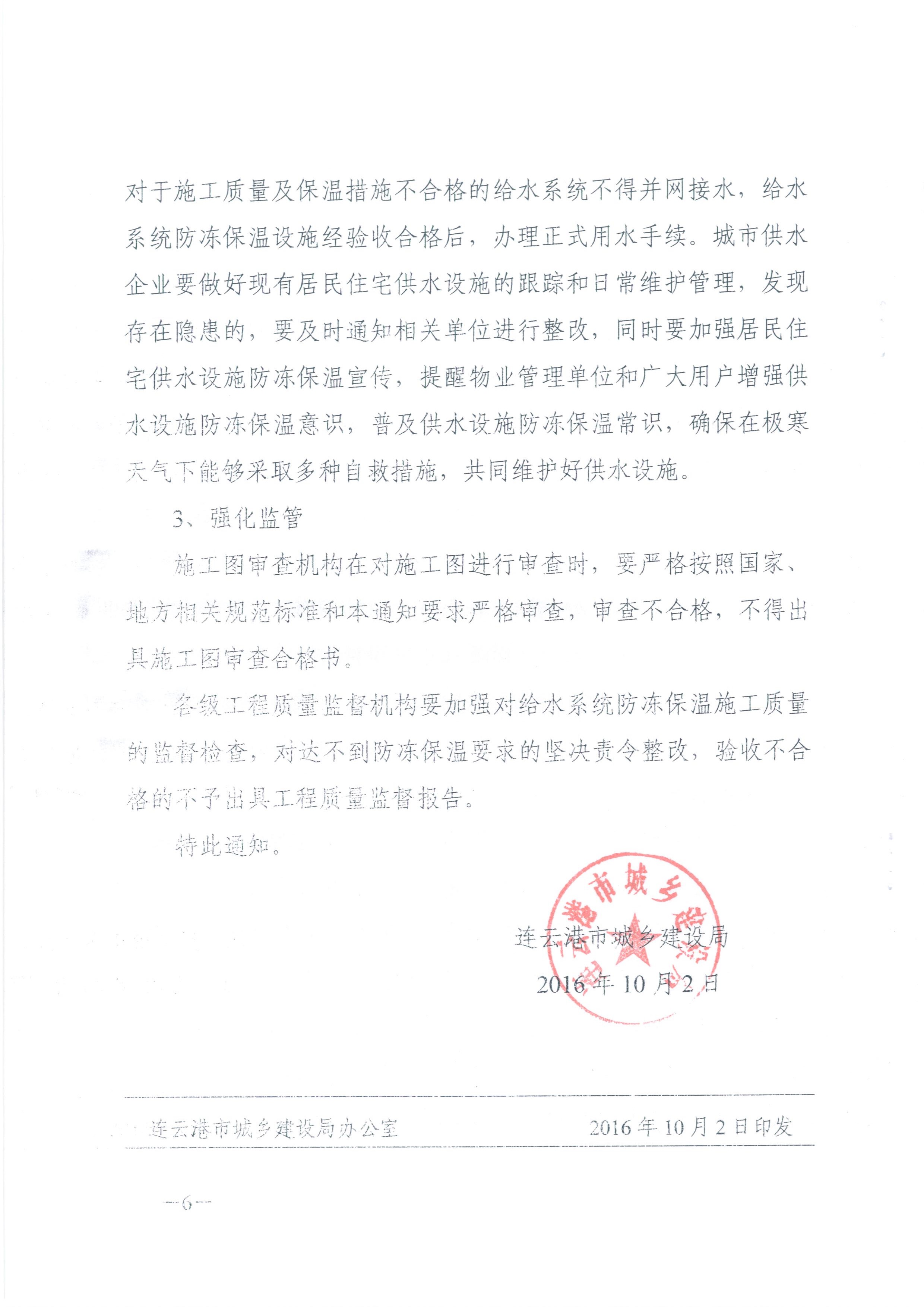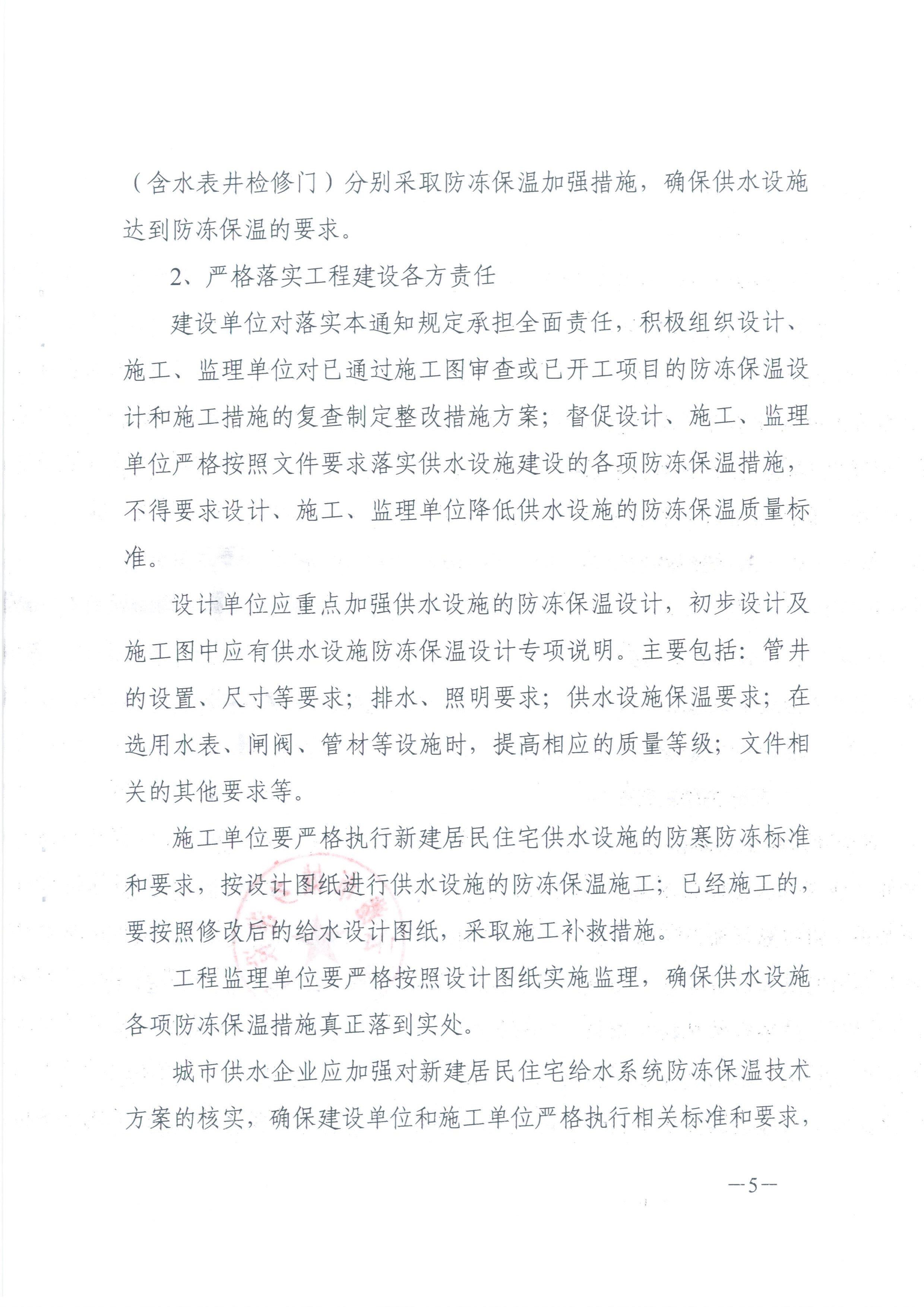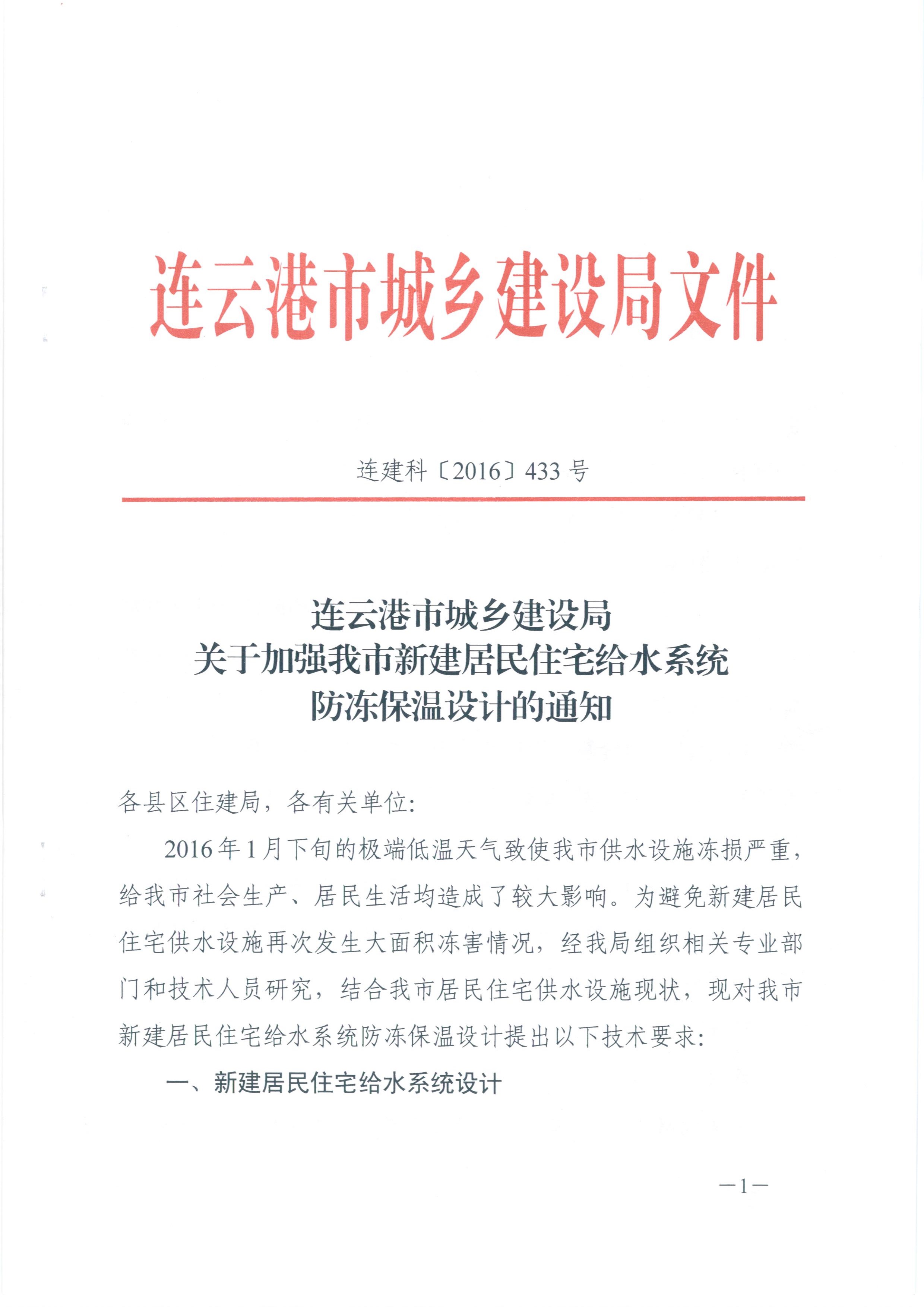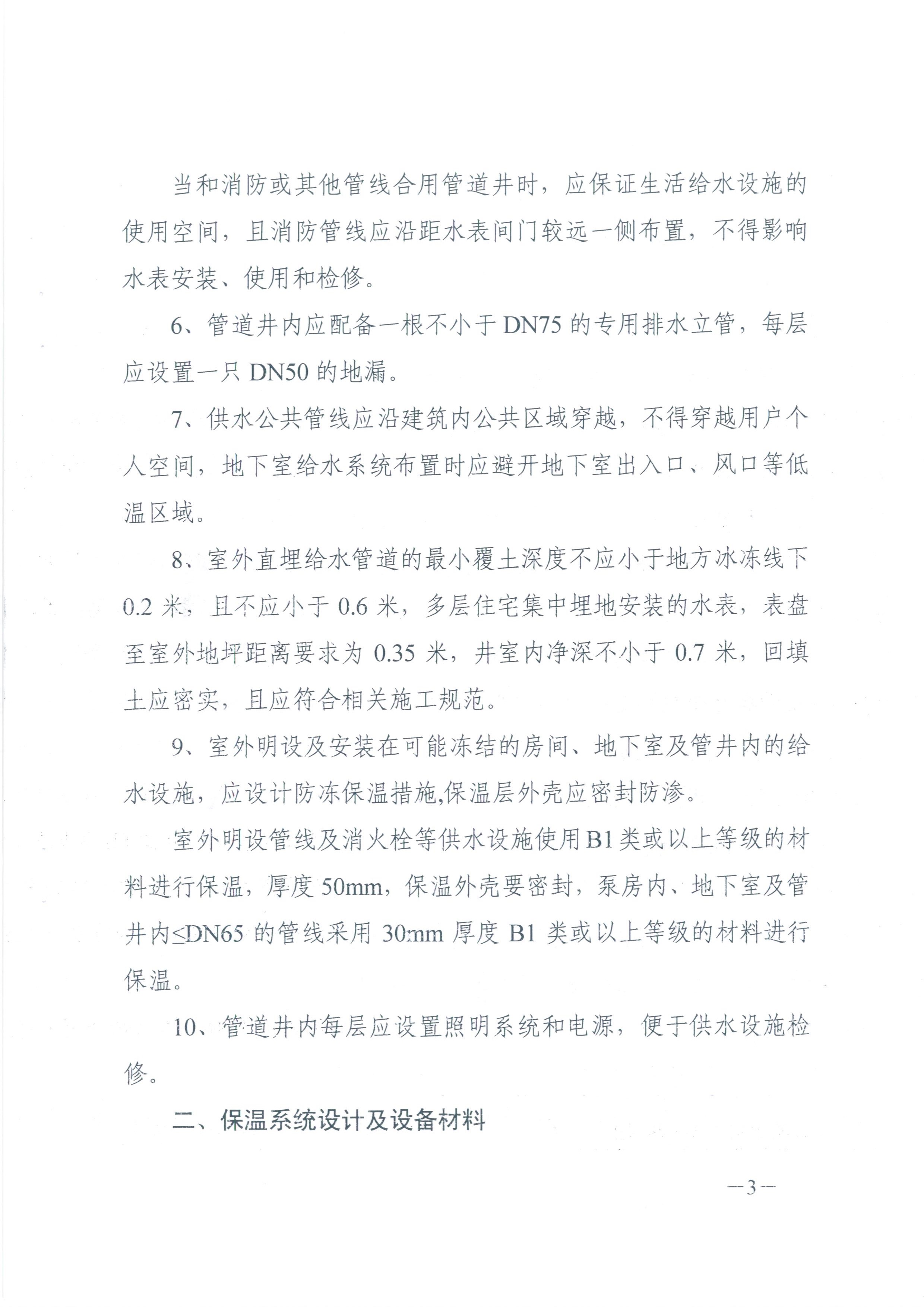 关于加强我市新建居民住宅给水系统防冻保温设计的通知