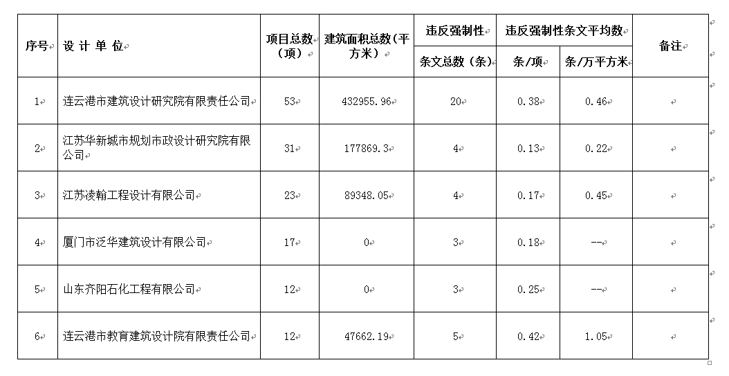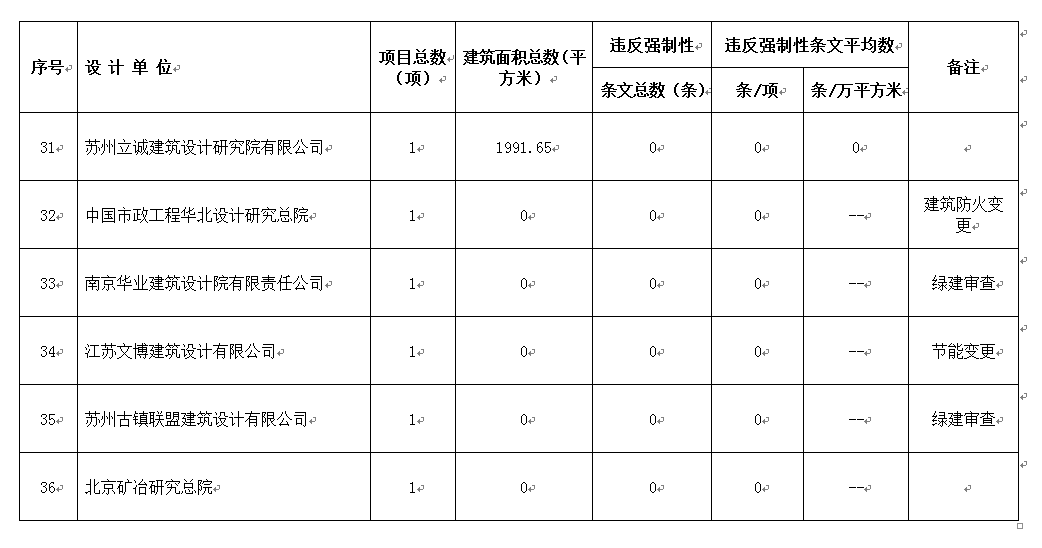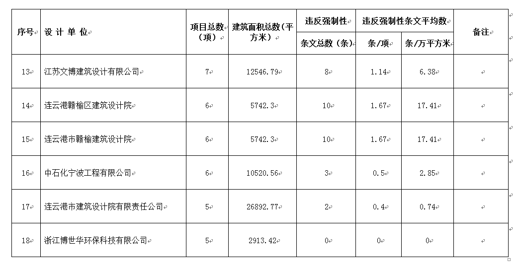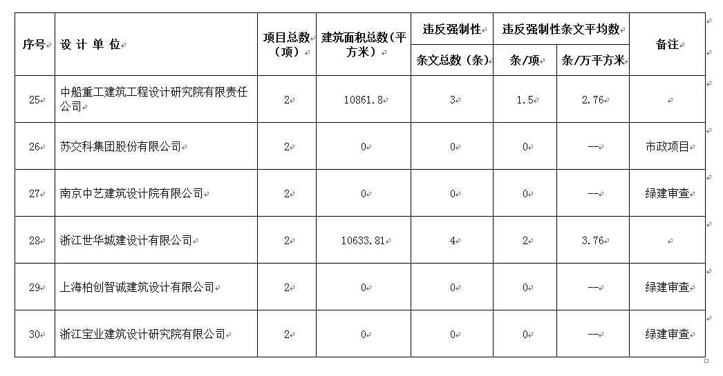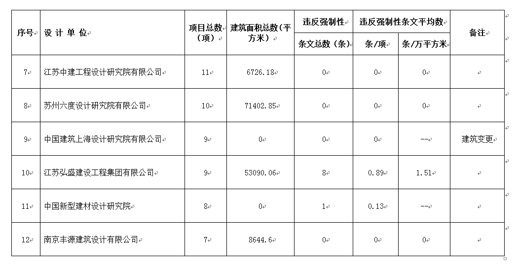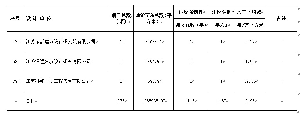 2016年11月份设计单位违反强条公示